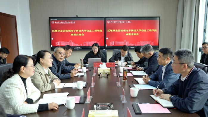 3月31日上午,临安区委书记惠海涛、副区长张凯一行来我院走访调研。杭州电子科技大学党委副书记、学院董事长钱波,学院党委书记王艳、院长管力明等领导班子成员出席调研座谈。双方围绕学院二期工程规划、校企地协同创新、人才队伍建设、服务地方发展等进行了深入交流,共商校地融合发展新路径。 座谈会上,钱波对惠海涛一行的到来表示欢迎,向临安区委、区政府长期以来对学院建设发展的关心支持表示感谢。她表示,信息工程学院始终坚持扎根地方、服务地方,在人才培养、产教融合、社会服务等方面持续取得积极成效。杭州电子科技大学将继续支持学院建设发展,进一步深化校地合作,更好服务临安经济社会高质量发展。 在听取王艳、管力明关于学院发展情况、校区二期建设思路和下一步校地合作设想的汇报后,惠海涛对学院近年来取得的发展成绩给予充分肯定。他表示,信息工程学院扎根临安十余年来,办学定位清晰、发展思路务实,为青山湖科技城建设和区域高质量发展注入了强劲动力。临安区委、区政府将一如既往聚焦学院发展所需,积极推动有关事项落地落实,为学院未来发展创造更优条件。惠海涛指出,高校是区域创新体系的重要支撑,希望学院进一步发挥自身优势