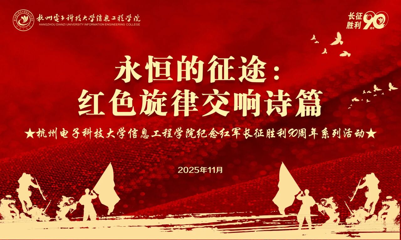 永恒的征途:红色旋律交响诗篇音符激荡,回望红色岁月旋律飞扬,谱写时代新篇旌旗猎猎映初心,乐声铿锵颂征程!今日,杭州电子科技大学信息工程学院纪念红军长征胜利90周年合唱音乐会在图书馆报告厅圆满举办。学院党委书记王艳、原遵义会议纪念馆馆长陈松,各二级学院、部门负责人,退休教师代表及师生代表欢聚一堂,沉浸式共赏这场融合红色经典、艺术表达与思政教育的美育思政展演,在激昂的旋律中重温峥嵘岁月,感受烽火年代的赤诚与坚守。《长征回响》雪山草地的足迹,枪林弹雨中的信念,他们用真挚的演绎,带我们重回那段峥嵘岁月。让我们在光影与台词之间,聆听历史的脉搏,感受何为信仰,何为不屈。艺术团话剧队《不忘初心》有一种信念,在岁月中坚守;有一种初心,在征程上闪耀。它是逆境中的执着,是前行时的滚烫。我们在歌声中回望来路、铭记热爱。计算机学院学生代表《珊瑚颂》红珊瑚,生于深海,却绚烂如火,坚韧珍贵。以经典旋律致敬峥嵘岁月,用歌声传递的不仅是岁月的旋律,更是一种时代的生命力与艺术感染力。经济学院教师代表《一被两半,清风一片》半条被子,一世温暖。半条被子藏着最朴素的初心:哪怕只有一条被子,也要分半条给人民。让我们透过西班牙语