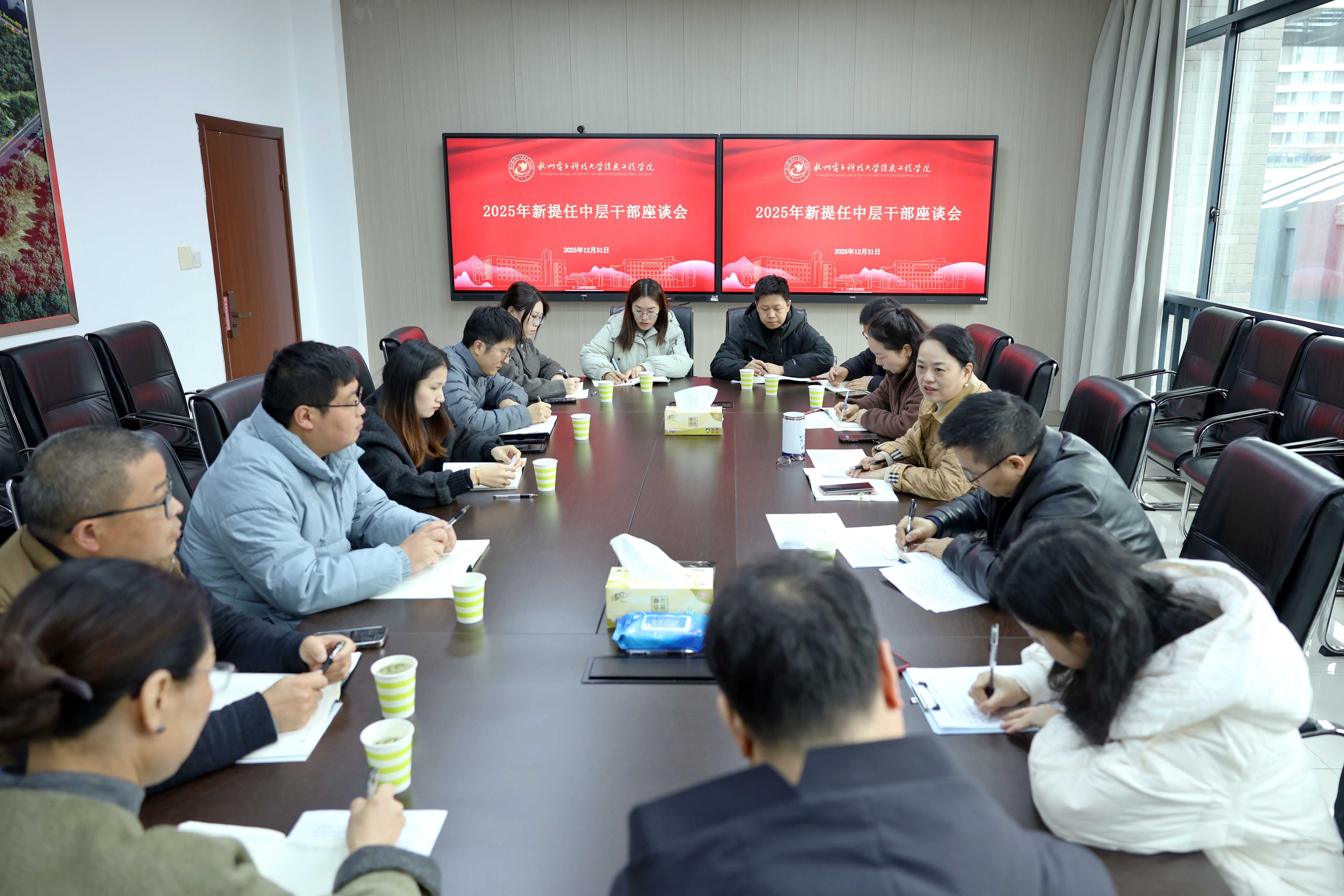 为深入贯彻落实上级党委关于干部队伍建设的部署要求,着力建设高素质专业化干部队伍,12月31日上午,我院在格致楼326会议室召开2025年新提任中层干部座谈会。学院党委书记王艳主持会议并讲话,纪委书记张馨艺,党委组织部、纪检监察室等职能部门负责人及2025年新提任的9名中层干部参加座谈。会上,王艳指出,2025年中层干部调整是学院党委立足事业发展全局作出的一项重要工作部署,此次调整严格遵循党管干部原则,全程充分酝酿、科学规划、严格程序,切实把好选人用人关。她强调,中层干部是承上启下、推动落实的关键力量,半年来的履职实践充分证明,新提任干部能做到迅速完成角色转变、主动扛起岗位重任,在新岗位上展现了积极进取的精神风貌和务实担当的工作作风,为学院稳步发展注入了新的动力。同时,立足于学院“十五五”规划开局起步的关键节点,她对新提任干部提出五点期望:一要旗帜鲜明讲政治,持续强化理论武装,坚定政治立场、坚守政治纪律,筑牢履职尽责的思想根基;二要履职担当强本领,着力提升统筹谋划、攻坚克难、沟通协调和改革创新能力;三要牢记使命守初心,强化育人意识,提升育人质量,关爱学生成长,践行立德树人根本任务;四要廉