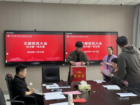11月10日,机关第一党支部在格致楼326会议室召开党员大会,顺利完成支部委员会换届选举工作,会议由支部书记林乾洋主持。