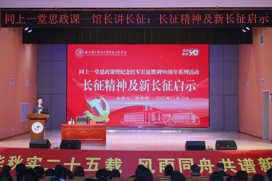 11月19日,我院“同上一堂思政课——馆长讲长征”暨纪念红军长征胜利90周年系列主题讲座《长征精神及新长征启示》在图书馆报告厅举行。本次活动特邀贵州黔东南州政协文化文史与学习委员会主任、黎平会议纪念馆馆长、副研究馆员张中俞担任主讲嘉宾。各职能部门、二级学院负责人及师生代表等400余人参加了本次活动。讲座由我院副院长卢文军主持。