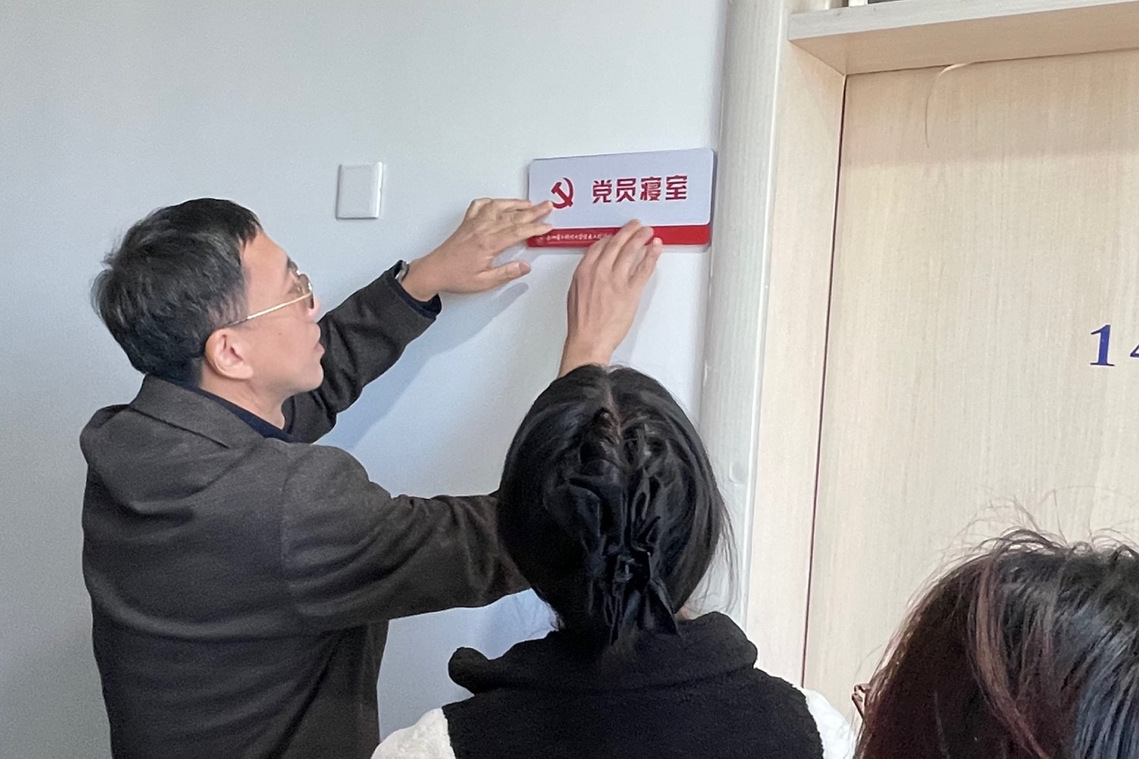 为进一步发挥学生党员先锋模范作用,强化社区育人功能,机械工程学院于11月26日开展“党员亮身份,标杆立社区”主题活动,徐毅鹏副院长带队走访党员寝室,并为其挂牌。机械工程学院党总支书记李月涛、党总支副书记谢林枝以及相关辅导员一同前往。活动当天,徐毅鹏一行深入学生社区,先后走访1号、4号学生公寓,并为1号楼B103室、4号楼1418室、1427室等学生党员寝室悬挂“党员寝室”铭牌。徐毅鹏与党员同学们亲切交谈,他强调:“党员寝室不仅是身份的标识,更是一份责任与承诺。希望同学们以挂牌为契机,在学风建设、内务管理、社区服务中发挥表率作用,带动更多同学共建文明社区。”党员寝室成员承诺在学业帮扶、宿舍安全、志愿服务等方面主动作为,接受师生监督。李月涛表示,党员寝室挂牌旨在树立标杆典型,后续将分批次为其余党员寝室完成铭牌上墙工作,实现“一寝室一标杆,一楼层一示范”的党建格局。