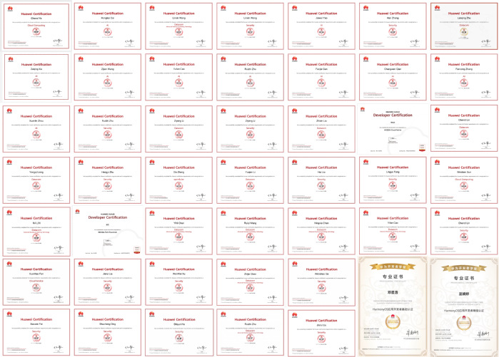在师资建设方面,学院持续加大对教师队伍ICT能力的培养投入。合作建立以来,已累计组织教师参与华为及其授权培训伙伴(如誉天)举办的各类师资培训20余次。2025年,ICT学院教师团队积极参与华为鸿蒙云应用开发、数据库应用开发、HCCDP-AI、HCCIP-云计算等多个方向的师资培训,获得结课证书,更有两位教师凭借扎实的专业能力,成功通过了华为HCIP(华为认证ICT高级工程师)认证,标志着我院师资水平的显著提升。这一系列系统化、前沿性的培训与认证,显著提升了我院教师的ICT产业技术水平与实践教学能力,为高质量课程教学提供了有力保障。
