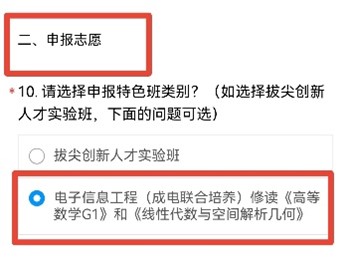 (一)报名“电子信息工程专业(成电联合培养)”必须在第一学期修读《高等数学G1》和《线性代数与空间解析几何》,课程修读报名请扫如下二维码,并在“二、申报志愿”中选择“电子信息工程专业(成电联合培养)修读高等数学G1》和《线性代数与空间解析几何》”。