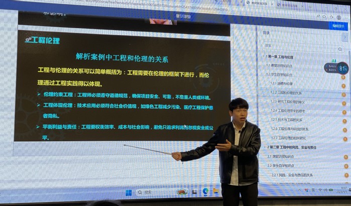 4月9日上午,邀请湖州师范大学徐云杰教授(全国首届数字教育标杆案例获得者)带来“AI工具赋能课程建设——《工程伦理》建设经验”的主题分享。徐老师以务实、风趣的语言深刻阐述了智慧课程建设思路与过程,AI赋能智慧教学思路的变化,系统拆解智慧课程建设从资源整合、内容组织、智能备课授课到学习效果评价等的全流程智慧化重构策略,并依托超星平台传授了如何从传统课程资源转向AI辅助知识库建设和知识图谱应用经验。他以实事案例融入课程教学,借助学习通AI助教和智能体创新教学模式,展示了“师-机-生”多元互动课堂、AI作业批改与智能化学情分析评估,有效地激发了学生的学习兴趣,提升了学生知识能力素质的目标达成度。
