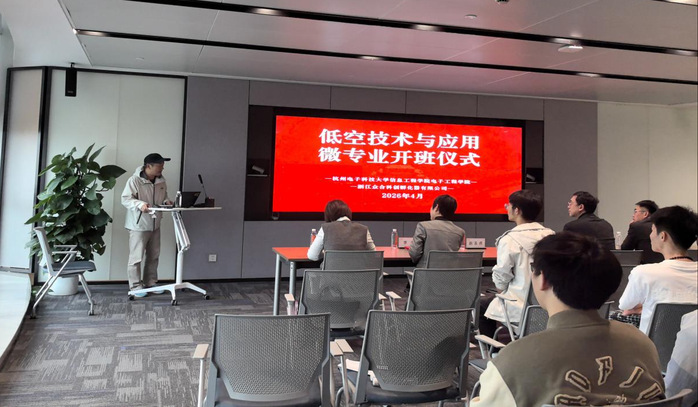 4 月 16 日下午,杭州电子科技大学信息工程学院电子工程学院“低空技术与应用”微专业开班仪式在临安西部科创谷(众合科技青山湖园区)举行。信息工程学院副院长徐毅鹏、浙江省信息安全行业协会低空经济先进技术专委会副秘书长赵玉虎、信息工程学院教务处处长李杰以及该微专业部分师生等出席,浙江众合科创孵化器有限公司副总经理陈博携核心团队热情接待。仪式由电子工程学院执行院长岳伟挺主持。