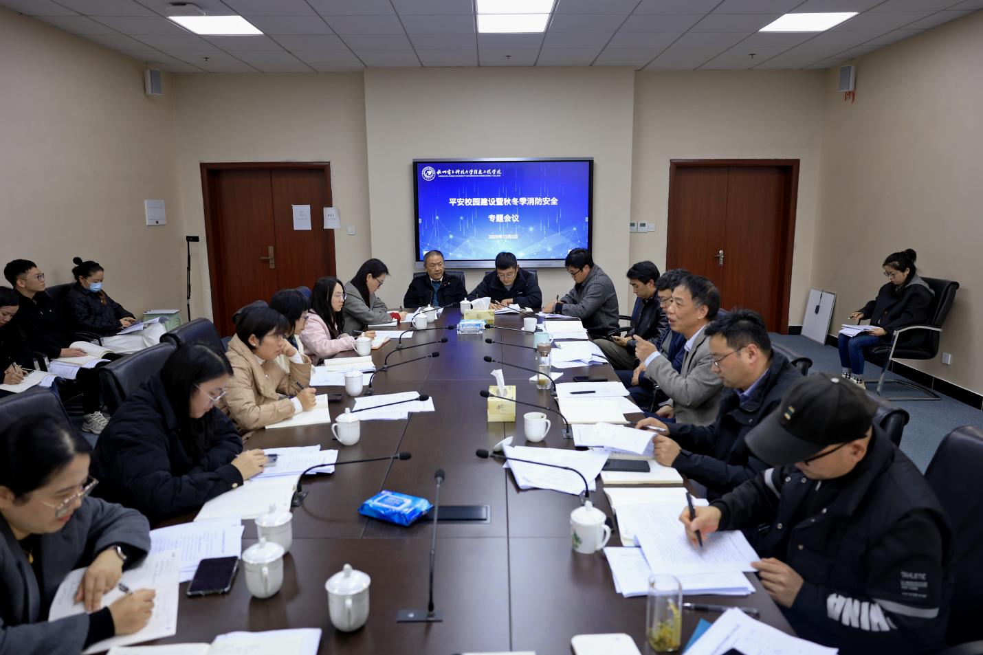 为深入贯彻校本部关于平安校园建设的总体部署,深刻汲取近期国内火灾事故教训,全面筑牢校园安全屏障,12月2日下午,学院于格致楼433会议室召开平安校园建设暨秋冬季消防安全专题会议。学院党委副书记彭萌萌、副院长卢文军出席会议并作重要讲话,各相关单位主要负责人参会,会议由彭萌萌主持。