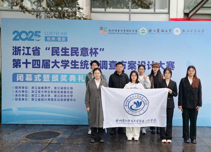 11月8日,浙江省“民生民意杯”第十四届大学生统计调查方案设计大赛决赛在浙江农林大学圆满落幕。在由浙江省教育厅、浙江省统计局指导,浙江省大学生科技竞赛委员会主办的本项省级A类权威赛事中,我院学子与来自全省高校的优秀队伍同台竞技,凭借扎实的专业基础、创新的调研设计和出色的现场表现,最终斩获省级二等奖2项、三等奖1项的优异成绩。