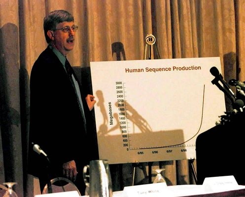 △人类基因组计划首席科学家弗朗西斯·柯林斯在介绍所负责项目