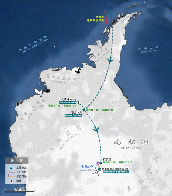 金庆民:我们中美文森峰登山科考队于11月26日的凌晨到达了爱国(者)山大本营,三个小时以后,到达了文森山的登山大本营。
