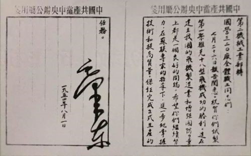 毛泽东写给320厂的嘉勉信