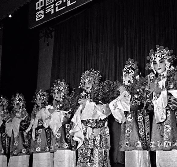 △1953年,梅兰芳(右三)在朝鲜演出《贵妃醉酒》