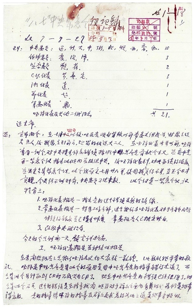 △八七会议记录手稿首页复制件