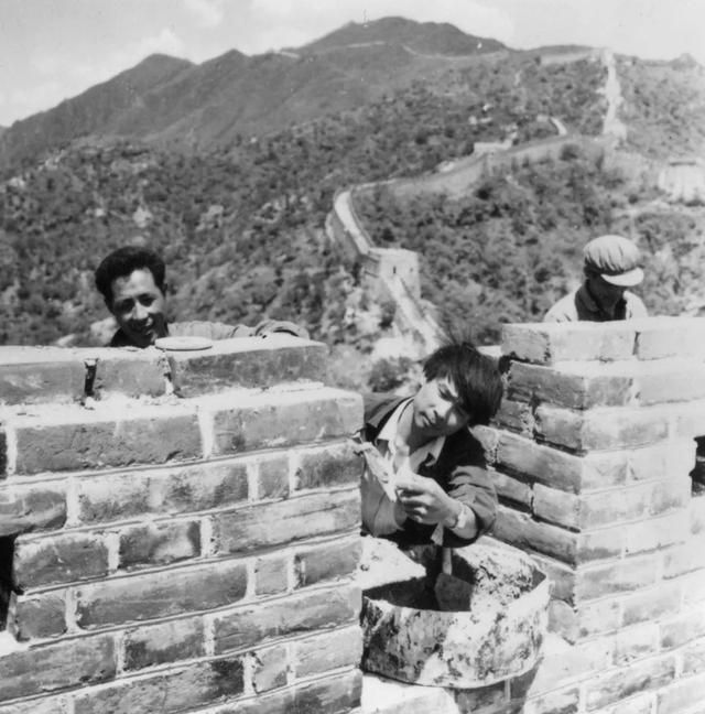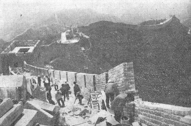 △1984年8月,“爱我中华,修我长城”社会赞助活动北京八达岭长城北七、北八两城台的修复工程正在施工。