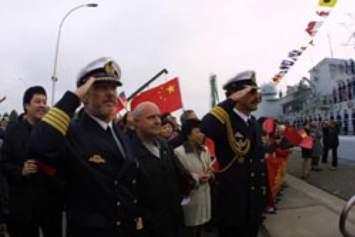 中国海军舰艇编队访问欧洲,在当地华侨华人中引起极大反响。为一睹来自祖国的军舰,许多华侨华人驱车几百公里赶到港口。在意大利拉斯佩齐亚港,当军舰甲板上的水兵军乐队奏起《歌唱祖国》的乐曲时,码头上近千名华侨华人和留学生挥动着五星红旗,齐声高歌。意大利海军拉斯佩齐亚军区司令加里恰中将激动地说:“你们的来访,是伟大中国的一张最好的名片。”