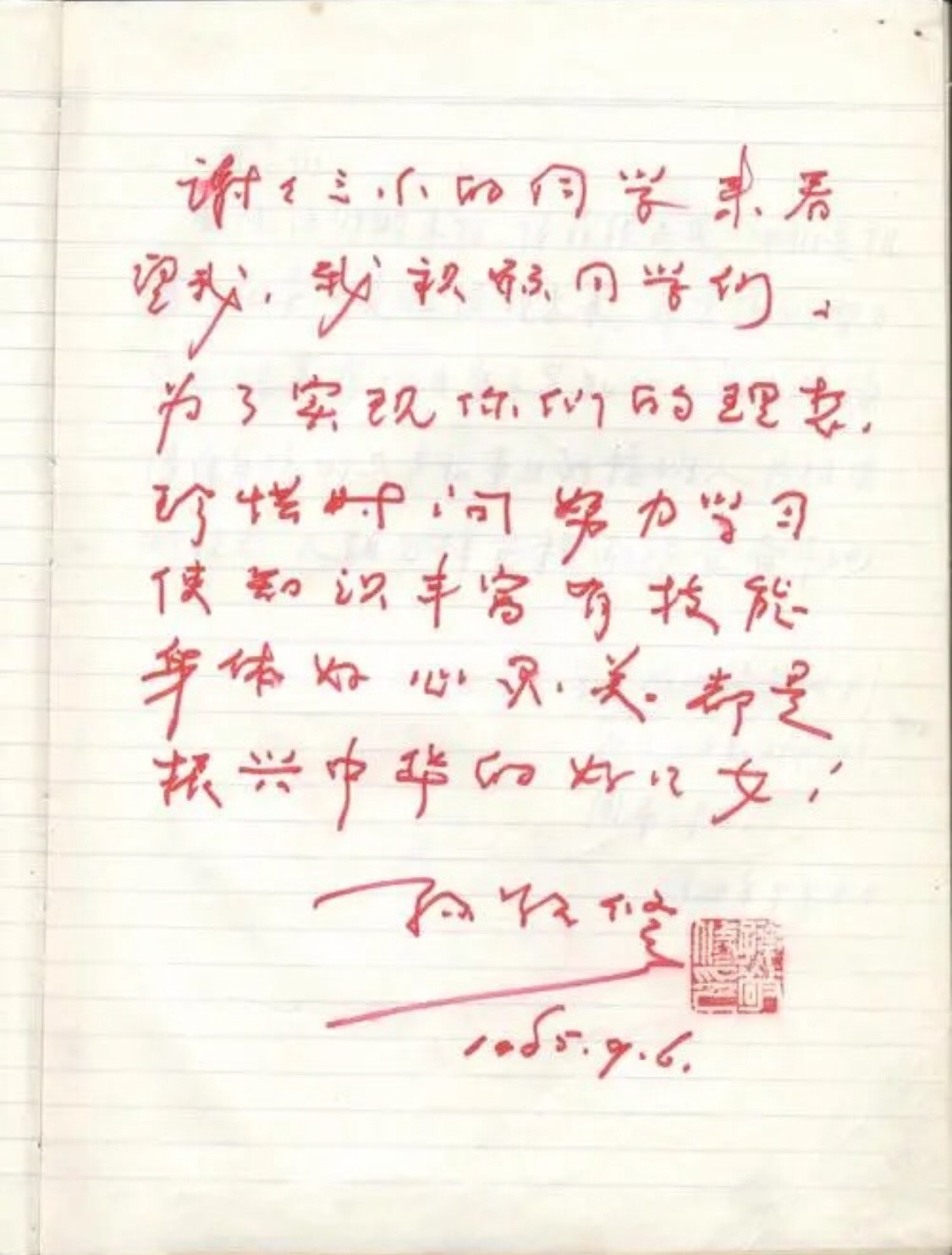 孙敬修为孩子们提笔留言