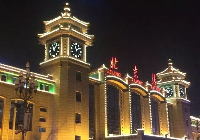 夜色下的北京火车站