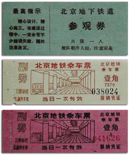 1969年10月1日,随着一辆地铁机车呼啸驶出,北京地铁一期工程低调地正式通车,两年后,开始试运营。运营区段从北京站到西郊苹果园,共17个车站。地铁单程票价定为一角,但不对外运营,只能凭单位介绍信参观乘坐。
