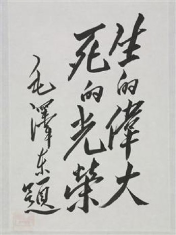 △革命文物——毛泽东为刘胡兰亲笔题词“生的伟大,死的光荣”。