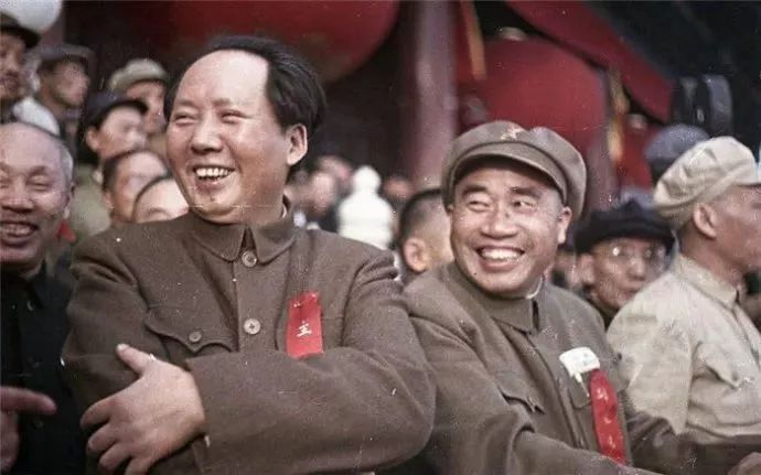 1949年开国大典:毛泽东主席和朱德总司令开心的笑容