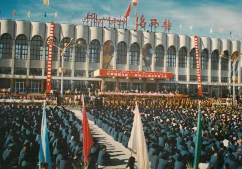 △1990年9月1日,兰新铁路乌鲁木齐-阿拉山口段(北疆铁路)通车庆祝大会。