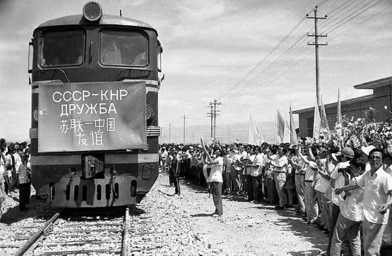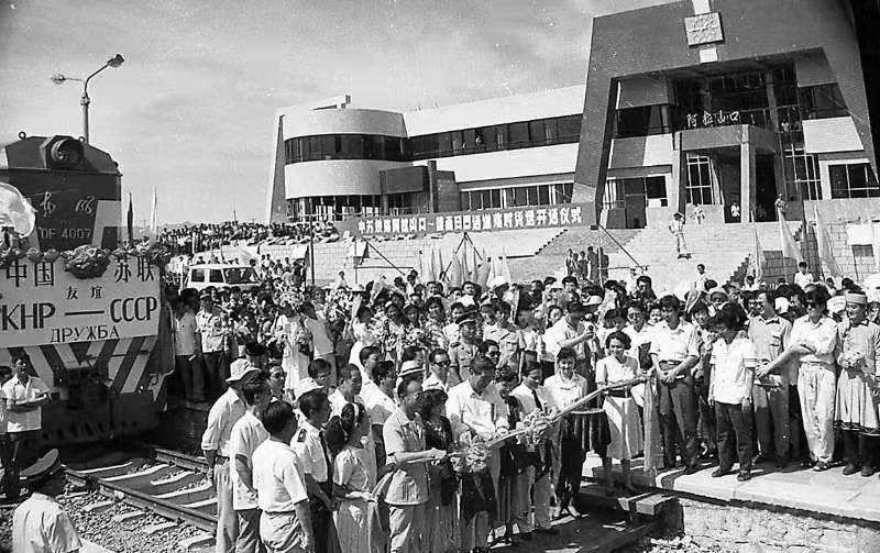 历史纪录片:9月12日,中国和苏联的铁道部负责人,两国铁路建设者云集在中苏边境阿拉山口,用那把凝聚着两国人民友谊和心血的扳手,将中国的兰新铁路和苏联的土西铁路紧密连接在一起,从而宣告人类文明史上第二条亚欧大陆桥全线贯通,举世闻名的丝绸古道在20世纪90年代将成为沟通亚欧两大洲的钢铁通道。