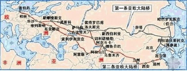 历史纪录片:北疆铁路所连接的这座新亚欧大陆桥,缩短了亚欧两大洲客货运输的距离和时间,比绕印度洋走海路运输,费用可节省20%,运时可缩短50%。若与第一座(西伯利亚亚欧)大陆桥相比,运距可缩短2000多公里。