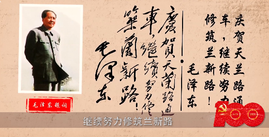 △1952年,在天兰铁路正式通车后,毛主席亲笔题词:“庆贺天兰路通车,继续努力修筑兰新路”。