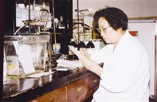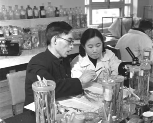 △1951年,屠呦呦与老师楼之岑副教授一起做研究。