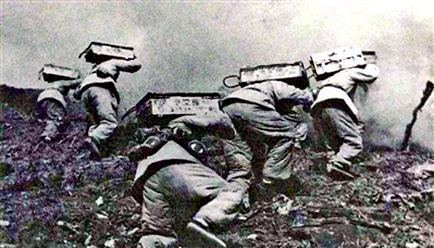△上甘岭战役中,我军后勤人员付出巨大牺牲