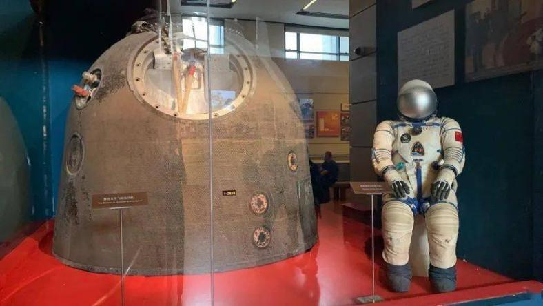 △神舟五号载人飞船返回舱和杨利伟穿的航天服 国家博物馆藏