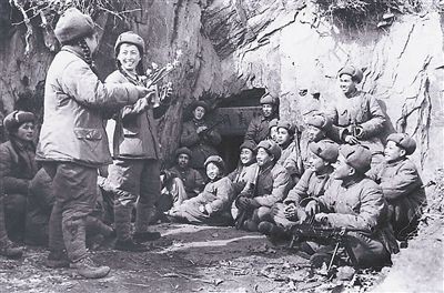 △农历大年三十,志愿军官兵在组织的晚会上表演节目