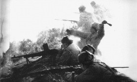 时为第42军第125师第375团工宣队队员 雷鸣:一直到了江边,大家到河里去捧一捧水来喝一喝,大家喝了说,这是壮行酒,很快就要告别祖国。