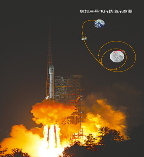 2013年12月2日,“嫦娥三号”携带着中国首辆月球车“玉兔号”于西昌卫星发射中心由“长征三号乙”运载火箭送入太空。探月工程二期副总设计师孙辉先说,从“绕月”到“落月”,“嫦娥三号”跨出了从地球到月球的一大步。