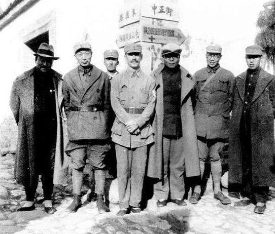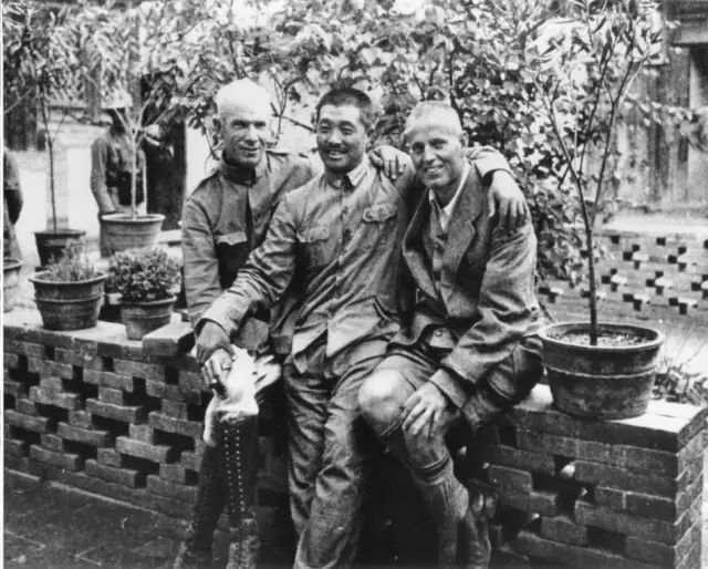贺龙与白求恩(左一)、布朗(右一)医生合影