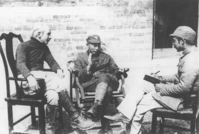 1938年9月,聂荣臻(中)和白求恩接受《救亡日报》记者叶文津采访。(沙飞 摄)