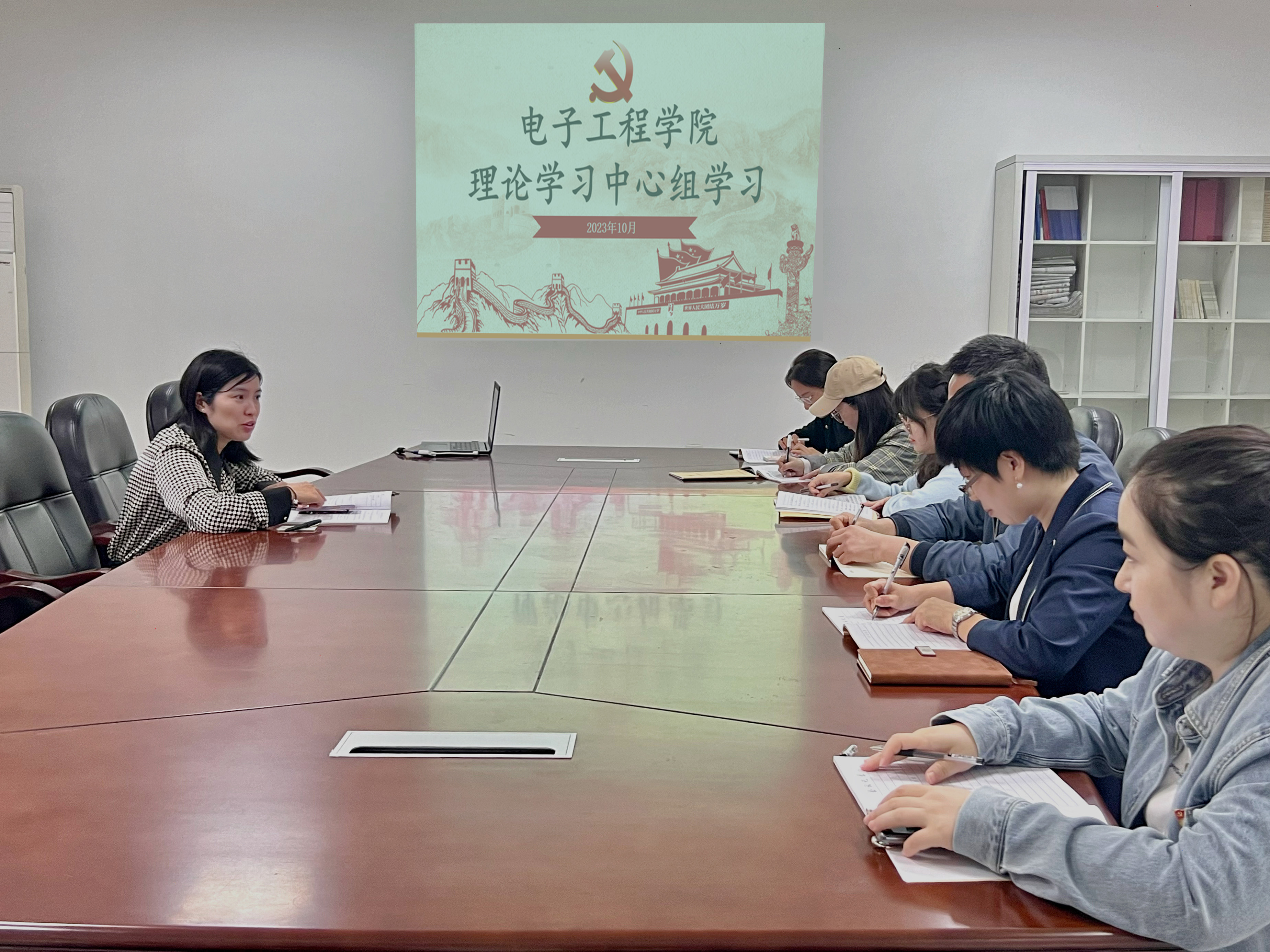 10月11日下午,电子工程学院理论学习中心组开展“中国式现代化是强国建设、民族复兴的康庄大道” 暨教育强国专题学习会。本次学习由电子工程学院党总支书记俞优姝主持并领学,执行院长岳伟挺及学院理论学习中心组学习成员出席。