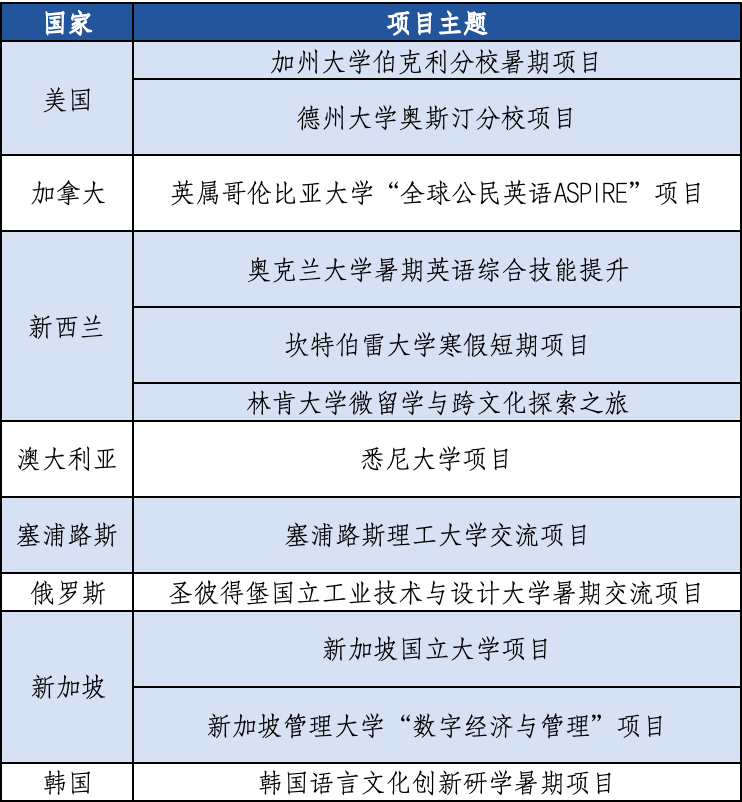 学院部分访学项目概览