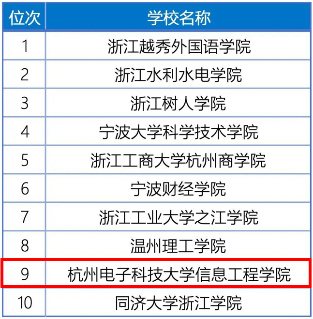 浙江省普通本科院校(含独立学院)国际化总体水平排名前10位