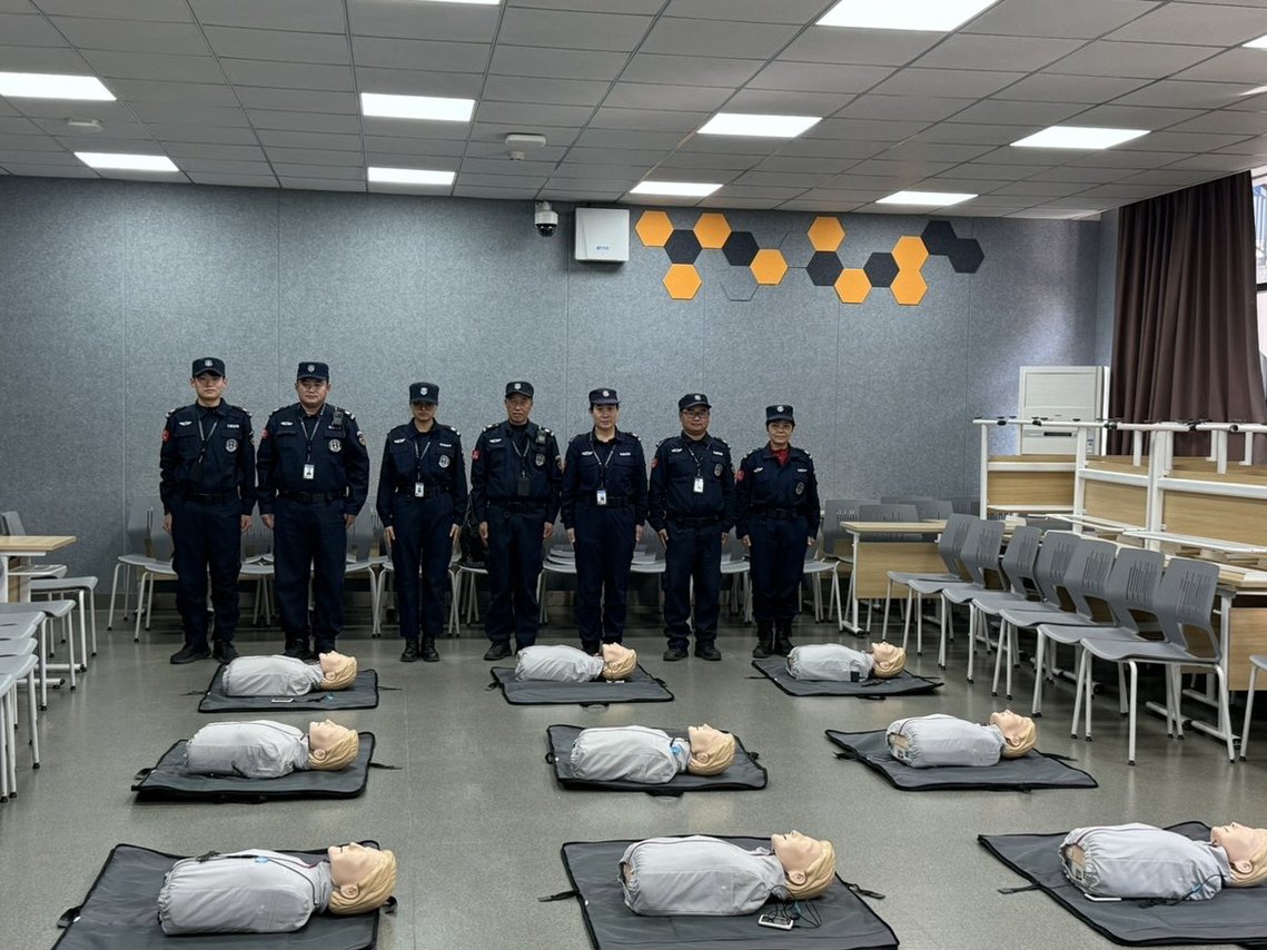 在模拟急救场景中,学员们重点学习了心肺复苏(CPR)与AED(自动体外除颤器)的操作。培训中吕成刚老师强调:“心跳骤停后的4分钟是抢救的黄金时间,每一秒都关乎生死。”学员们通过反复练习,掌握了胸外按压的核心要领——频率保持在100-120次/分钟,深度达5-6厘米,并配合规范的人工呼吸。AED操作则简化为“四个步骤,两个离开”的清晰流程,吕老师还特别提醒贴电极片时应避开潮湿部位,确保设备准确分析心律。
