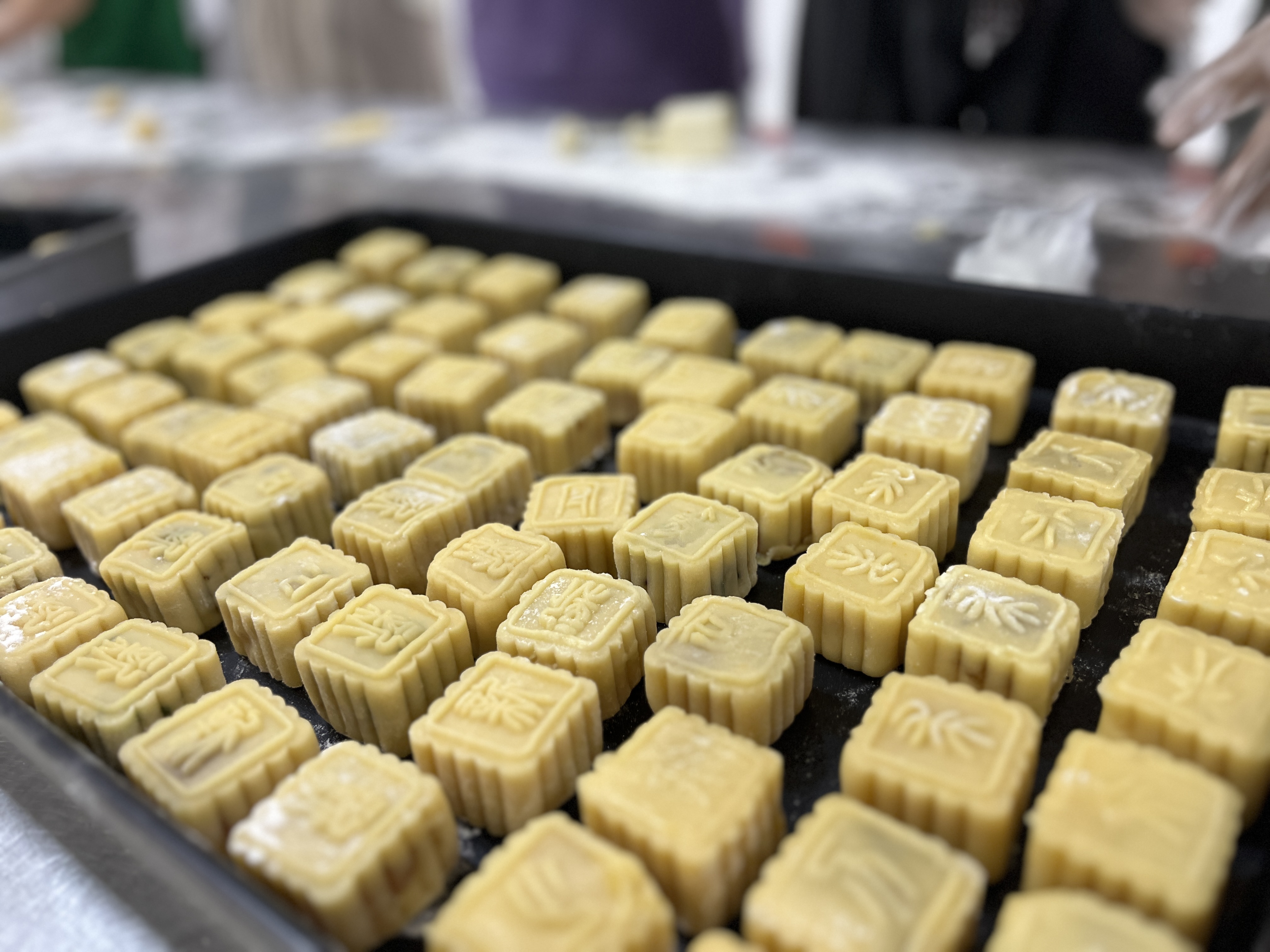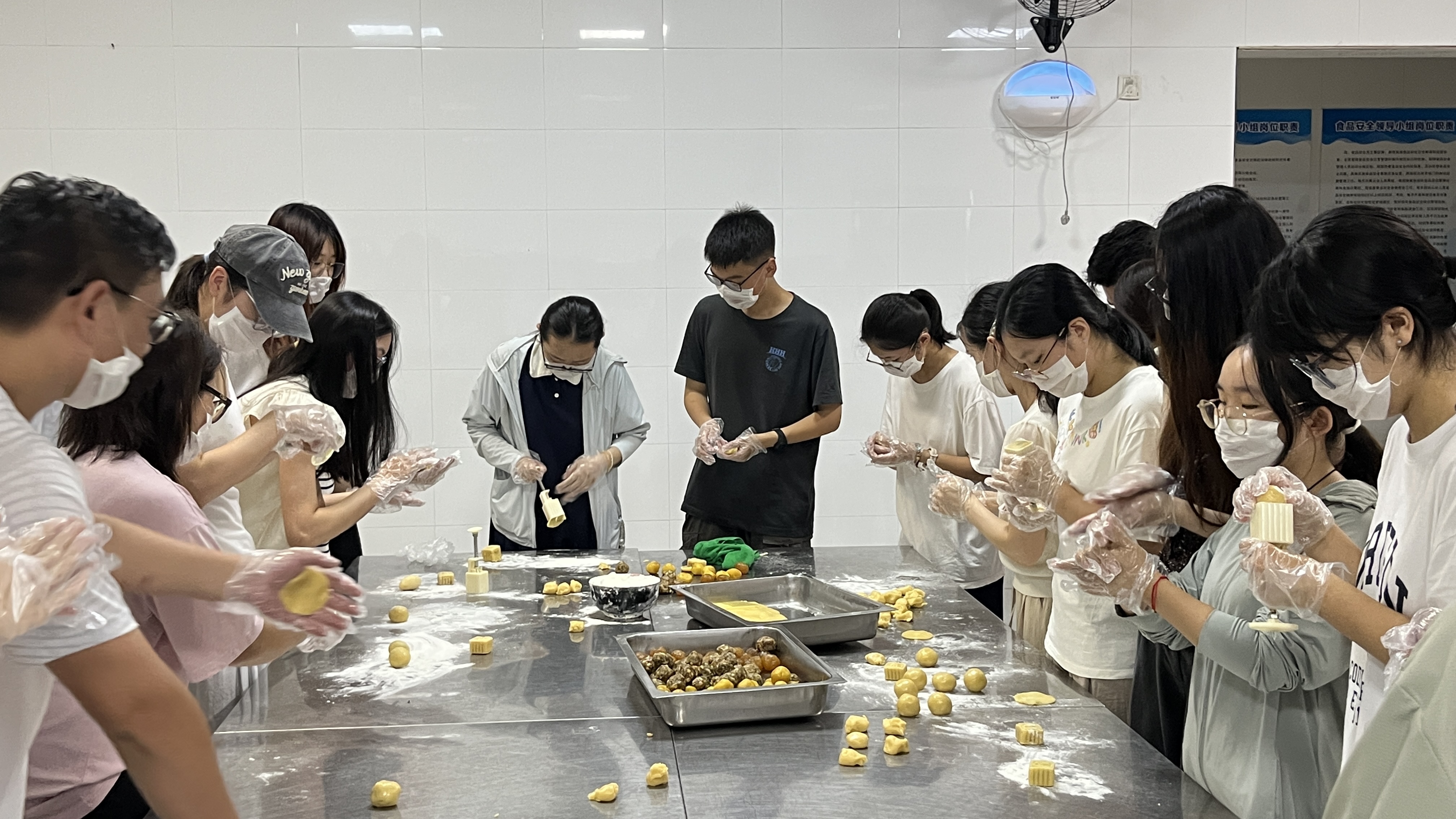 活动现场,后勤工作人员细致讲解月饼揉面、包馅、压模等步骤,大家分工协作、相互配合,从称量食材到按压成形,每一个环节都认真投入。面团在手中揉转,馅料包裹着心意,一个个造型精致的月饼逐渐成形,空气中弥漫着香甜气息与欢声笑语。