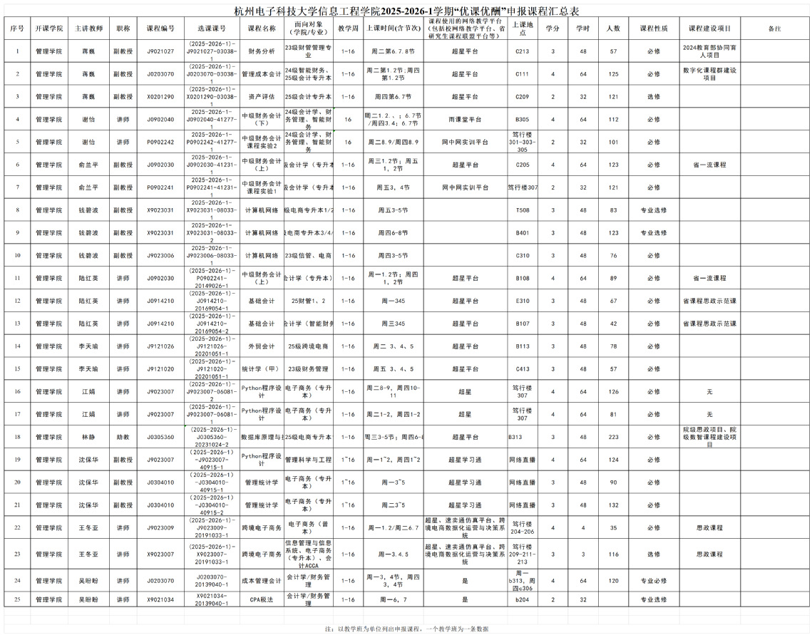 杭州电子科技大学信息工程学院2025-2026-1学期“优课优酬”申报课程汇总表