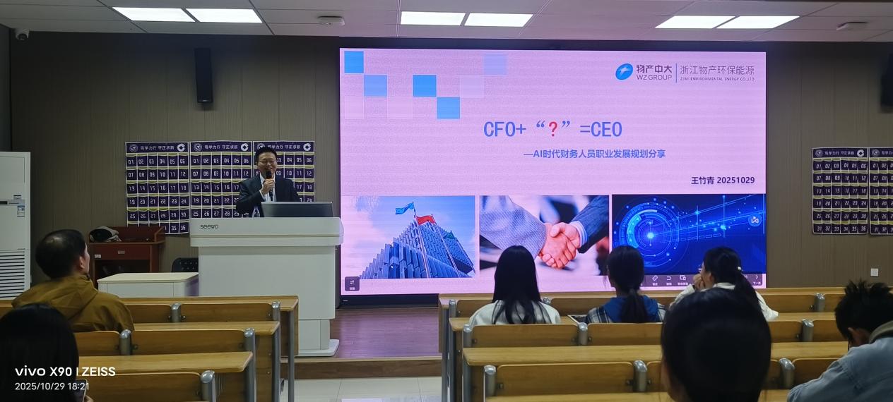 人类进入AI时代,财会专业大学生如何精准定位自身学业与职业发展?10月29日晚,特邀嘉宾物产环能副总王竹青教授为25级财会新生做了题为《CFO+?=CEO——AI时代财务人员职业发展规划分享》精彩报告。