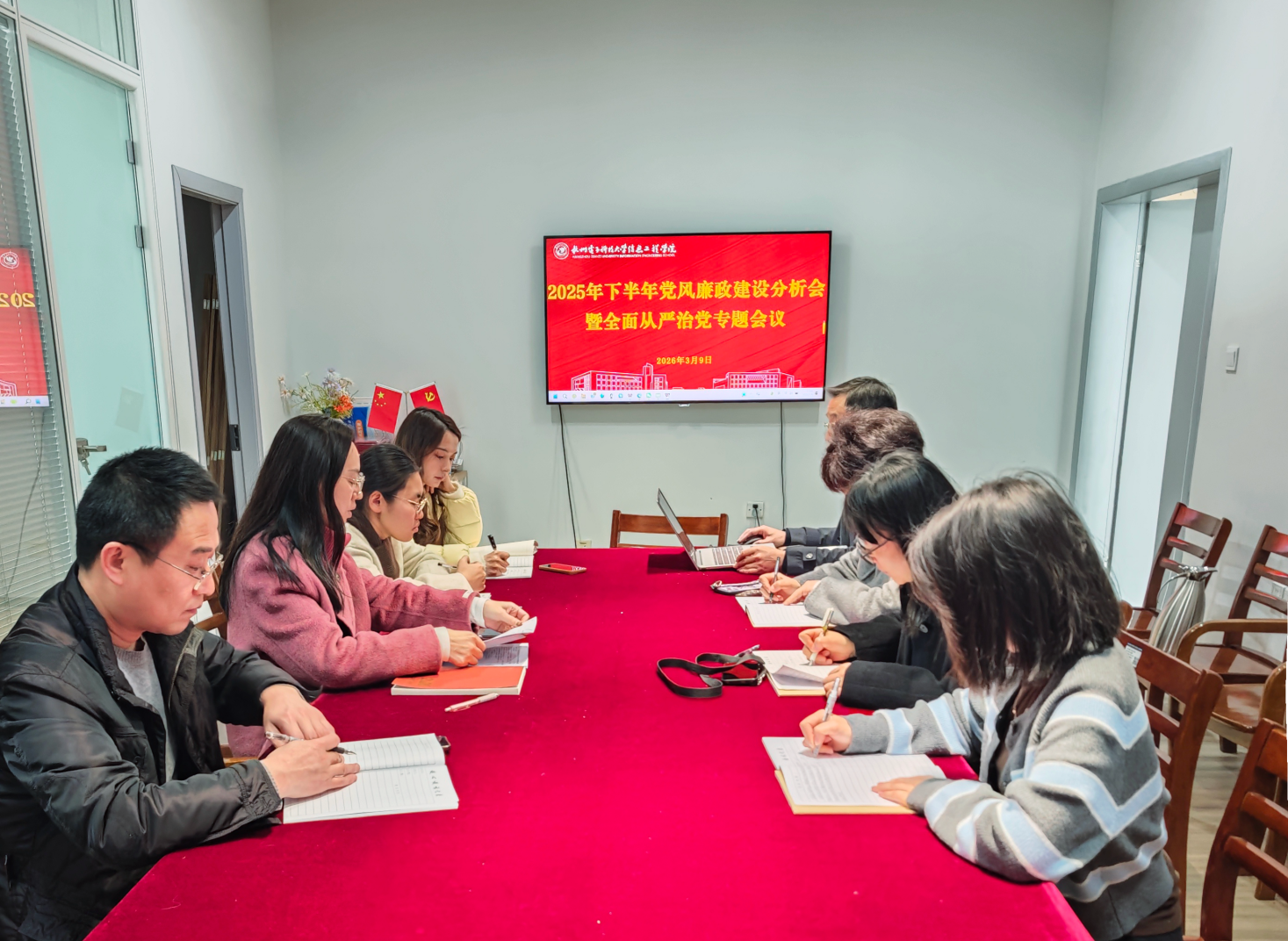 3月9日,管理学院举行2025年下半年党风廉政建设分析会暨全面从严治党专题会议。党总支书记潘慧灵主持会议,副书记陈其卉领学,理论学习中心组成员参会。