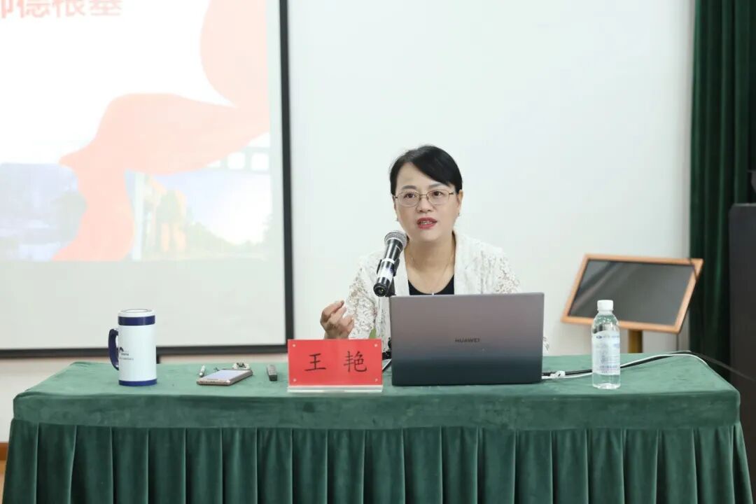 学院党委书记王艳以《力行强国使命 铸牢师德根基》为题,从当前世界格局与战略部署出发系统解读了高校教师作为“人才培养基石”的核心职责,鼓励新进教师把握发展机遇、主动担当作为;随后,王艳生动讲述了三位杭电老校长“科技报国、矢志奉献”的感人事迹,强调我院始终传承杭电本部的军工渊源与创新基因。最后,号召教职工坚守“四心”“四力”“四个坚持”实践路径,牢记为党育人、为国育才的初心使命,全力培养“六有”时代新人。