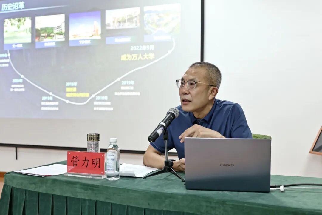 学院院长管力明教授以“潜心耕耘 追求卓越——学院发展与青年教师使命”为主题,为新进教职工讲授培训第一课。他从学院历史沿革、人才培养、学科科研、地方服务以及智美校园建设等方面,全面介绍了学院的发展概况,并重点解读了“十四五”时期学院的发展规划与战略目标。他对青年教师提出三点殷切期望,一要锤炼品行,用浩然正气学为人师;二要苦练本领,以真才实学传道授业;三要潜心钻研,以累累硕果回报社会。
