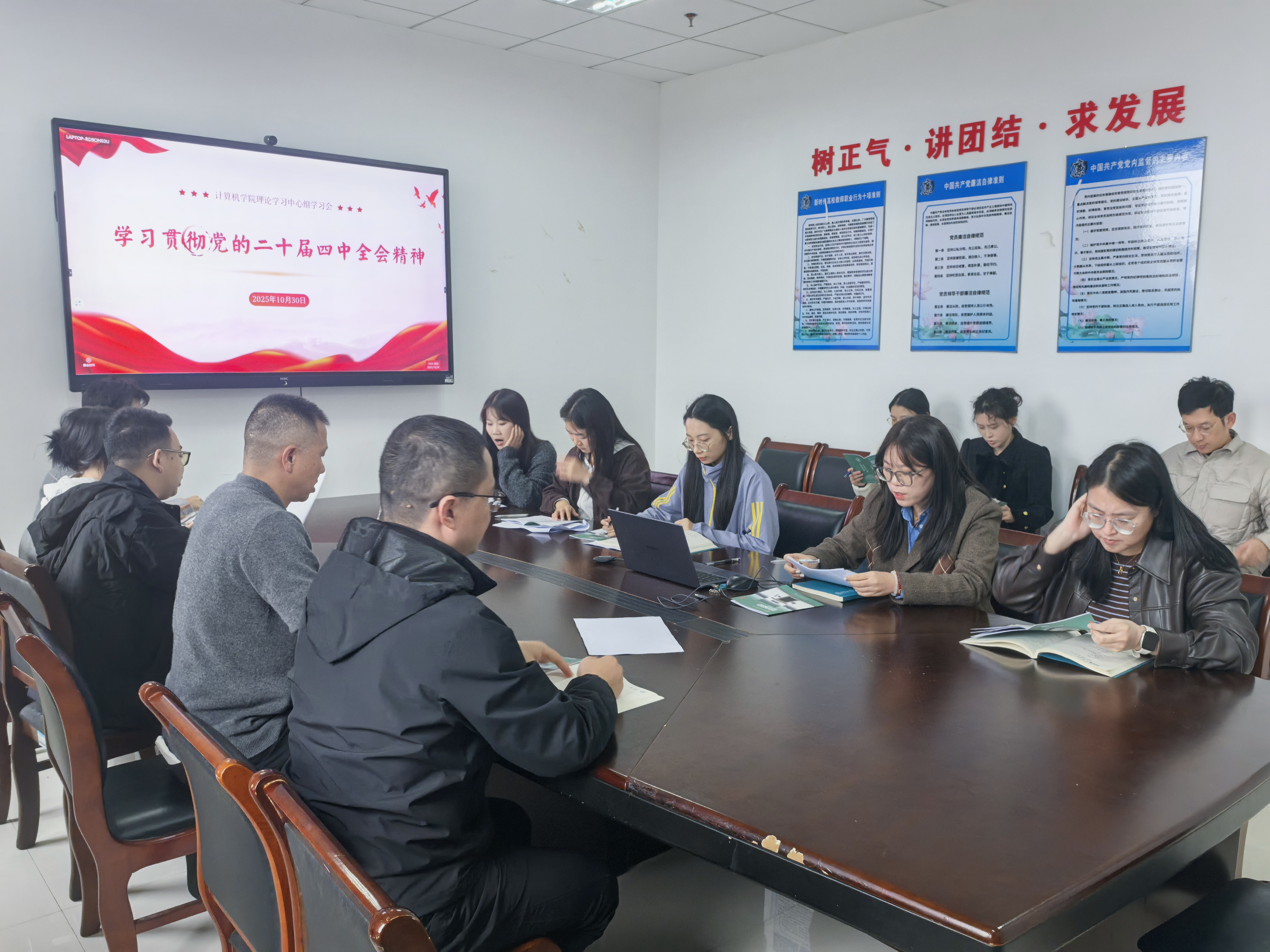 10月30日下午,计算机学院组织开展《学习贯彻党的二十届四中全会精神》专题理论学习中心组(扩大)会议,传达学习党的二十届四中全会精神特别是习近平总书记在全会上所作的工作报告和重要讲话精神。本次学习会由计算机学院党总支副书记藏丛杉领学,执行院长张海平、党总支书记叶虹敏、副院长周梦熊、学院学习小组成员、辅导员代表、教师代表出席会议。