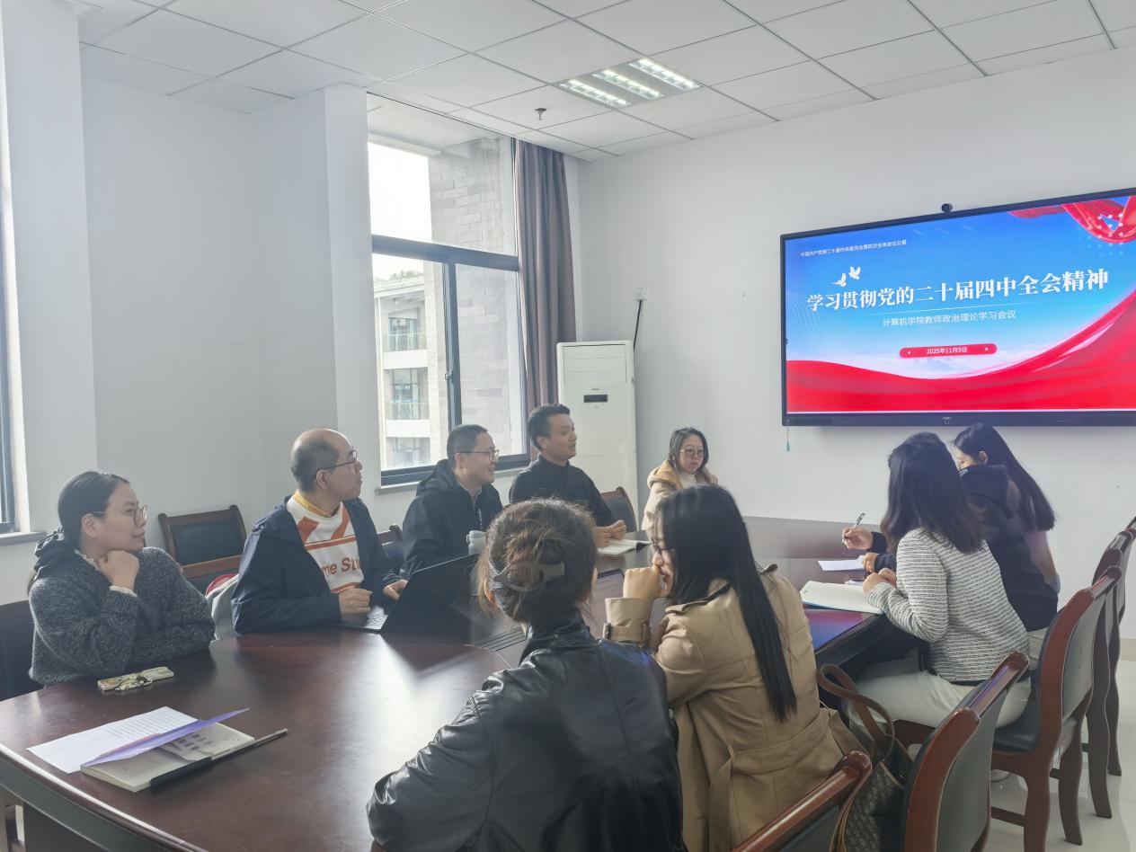 11月5日,计算机学院组织教师开展《学习贯彻党的二十届四中全会精神》主题学习会,本次学习会由计算机学院理论学习中心组成员孙志海领学,学院副院长周梦熊、教师代表、理论学习中心组成员出席会议。