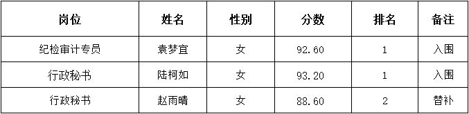 入围人员的体检、政审等考察考核手续,待学院另行通知。体检、政审、考察等环节如不合格,将取消拟录用资格。