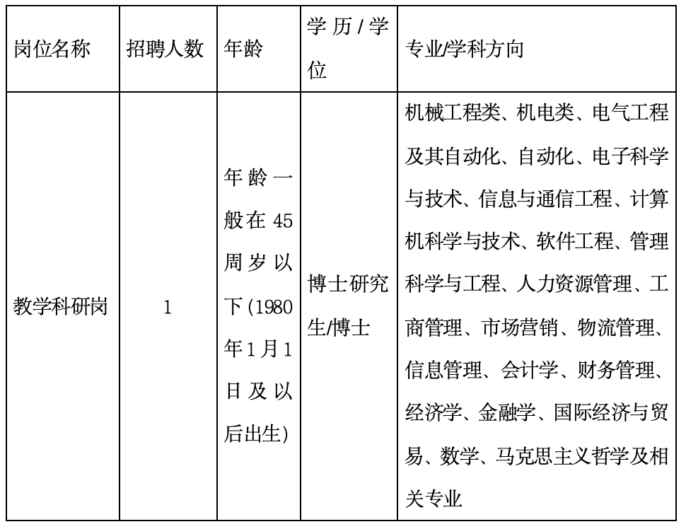 海内外知名高校毕业且获得博士学位,年龄一般不超过45周岁,具有较好的教学科研潜质。